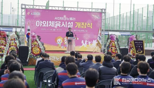 [ 한국미디어뉴스 이원영 기자 ] 충남 서산시는 지난 24일 성연면 왕정리 685번지 일원에서 ‘서산테크노밸리 야외체육시설’ 개장식을 개최했다고 밝혔다.