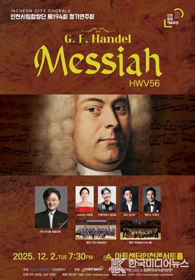 인천시립합창단 제194회 정기연주회 '헨델의 메시아 HWV56'은 12월 2일 아트센터인천 콘서트홀에서 열린다.