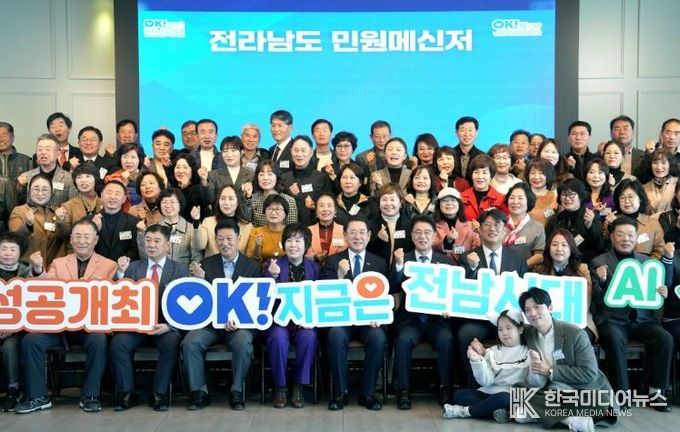 [ 한국미디어뉴스 이종철 기자 ] 전라남도는 26일 순천 아모르웨딩컨벤션에서 2025년 전남도 민원메신저 성과보고회를 열어 올해 민원메신저의 역대 최고 실적 달성 성과를 공유하고, 현장 활동 노고를 격려했다.
