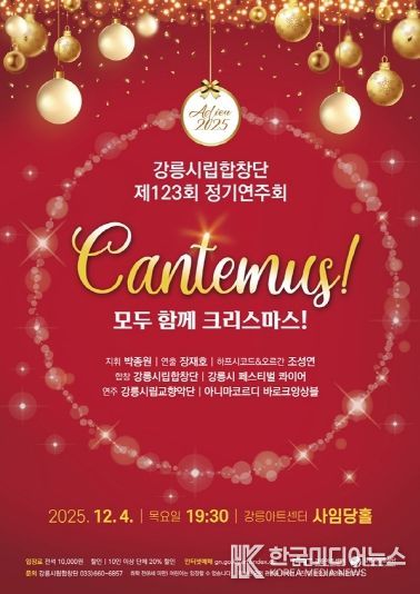[ 한국미디어뉴스 이원영 기자 ] 강릉시가 다채로운 공연과 전시를 마련해 시민과 관광객들에게 따뜻하고 풍성한 연말정취를 선사한다. 세계적인 현대미술 작가 캐서린 번하드 특별전과 국내 작가 콰야의 전시를 비롯해 강릉시립합창단의 제123회 정기연주회 및 기획공연, 초당작은도서관 크리스마스 이벤트 등으로 문화와 겨울 바다를 동시에 즐길 수 있는 강릉만의 특별한 연말 분위기를 만들 것으로 기대된다.
