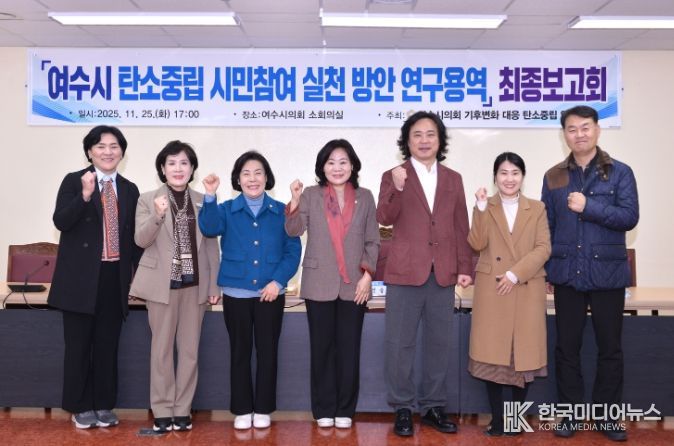 이번 보고회에는 정신출 대표의원을 비롯해 이미경·박성미·진명숙 의원, 여수시 관계자, 문영수 여수탄소중립지원센터 연구교수가 참석했으며, 생활영역 중심의 시민참여형 탄소중립 실천전략과 관광객·소상공인 대상 실천모델, 인센티브 체계 등 종합적인 실행 로드맵이 제시됐다.