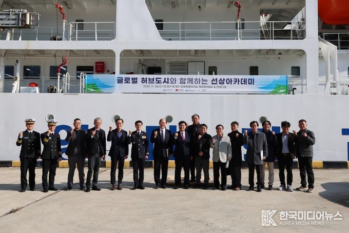 [ 한국미디어뉴스 이원영 기자 ] 동해시는 11월 26일, 묵호항에 정박한 국립한국해양대학교 실습선 한바다호에서 ‘글로벌 허브도시와 함께하는 선상 아카데미’를개최했다.