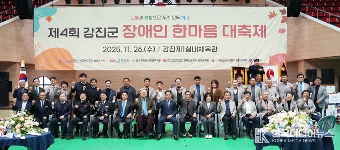 [ 한국미디어뉴스 이종철 기자 ] 강진군이 지난 26일 강진 제1실내체육관에서 ‘제4회 강진군 장애인한마음대축제’를 열고 장애인과 비장애인이 함께 어우러지는 따뜻한 시간을 가졌다.