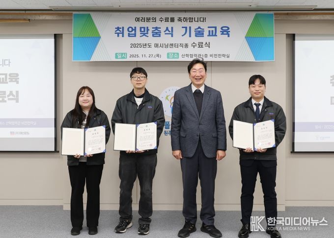 교육생들은 9월 1일부터 11월 27일까지 한국폴리텍대학 원주캠퍼스에서 ‘디에스테크노 취업연계맞춤과정(기계시스템·머시닝센터 직종)’을 이수했으며, 수료생 전원은 ㈜디에스테크노에 취업하게 된다.