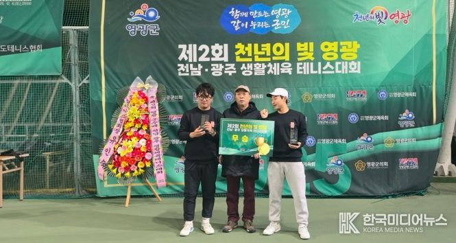 [ 한국미디어뉴스 이종철 기자 ] 영광군은 12월 6일 영광스포티움 테니스장을 포함한 9개 구장에서 열린 ‘제2회 천년의 빛 영광 동호인 테니스대회’가 성황리에 마무리됐다고 밝혔다.