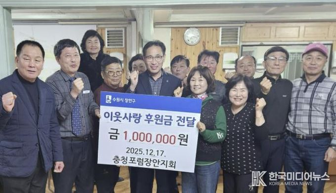 이일희 장안구청장은 “충청포럼 장안지회의 지속적인 관심과 후원에 감사드린다”며 “기부금은 지역사회 복지와 주민 지원을 위해 소중히 사용될 것”이라고 전했다.