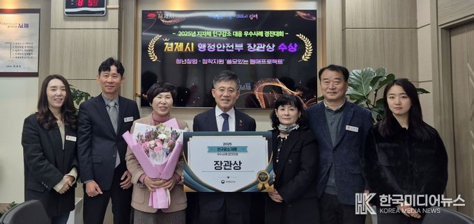 [ 한국미디어뉴스 이종철 기자 ] 김제시는 지난 18일 행정안전부가 주관한 '2025년 인구감소 대응 우수사례 경진대회'에서 ‘청년창업·정착지원, 쓸모있는 찜매 프로잭트’로 행정안전부장관상을 수상하며, 4년 연속 수상이라는 성과를 거두고 인구감소 대응 분야의 대표 우수 지자체로 자리매김했다.