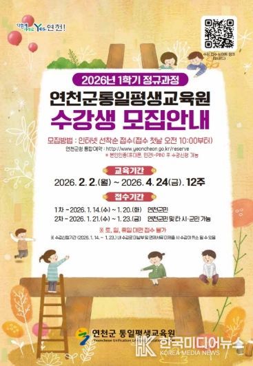 [ 한국미디어뉴스 김서안 기자 ] 연천군은 군민의 평생학습 참여 기회를 확대하기 위해 2026년 1학기 평생교육 정규과정 수강생을 모집한다고 밝혔다.