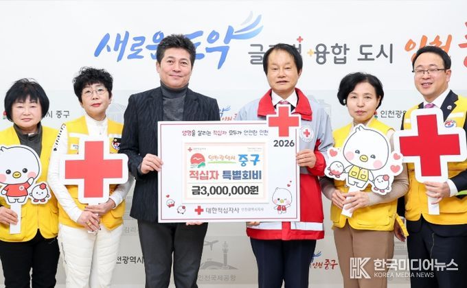 [ 한국미디어뉴스 최치남 기자 ] 인천시 중구는 병오년 새해를 맞이해 대한적십자사 인천지사에 ‘2026년도 적십자 특별회비’ 300만 원을 전달하며 나눔과 상생의 가치를 실천했다고 7일 밝혔다.