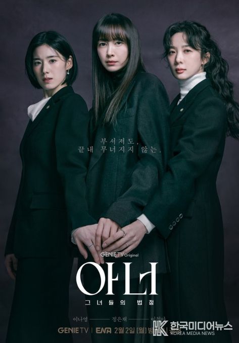 한편, 지니 TV 오리지널 드라마 ‘아너 : 그녀들의 법정’은 동명의 스웨덴 드라마를 원작으로 하며, 오는 2월 2일 월요일 밤 10시 KT 지니 TV에서 공개되고, ENA를 통해 방송된다.