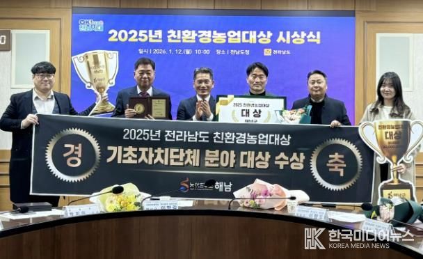 [ 한국미디어뉴스 이종철 기자 ] 해남군이 전라남도‘2025년 친환경농업대상’평가에서 대상을 수상했다. 2년연속 대상 수상으로, 우리나라 친환경농업 선도 지자체의 위상을 확고히 했다. 해남군은 상사업비 8,000만원도 확보했다.