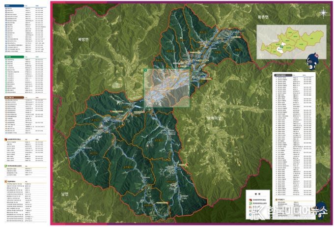 지도에는 홍천읍 행정리 경계를 중심으로 관공서와 교육시설, 재난 대피시설, 마을회관, 경로당, 무인민원발급기 위치 등 마을별로 필요한 주요 행정정보를 함께 표시해 주민 활용도를 높였다.