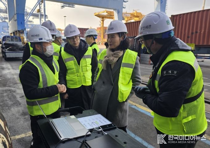 [ 한국미디어뉴스 이원영 기자 ] 이진희 관세청 통관국장은 1월 29일 부산신항(부산광역시 강서구 소재)을 방문하여 해상화물 통관 현장을 점검했다. 이번 현장점검은 해상화물을 이용한 마약 밀반입 차단 단속체계를 점검하고, 보세화물의 원활한 통관과 물류흐름 실태를 종합적으로 살피기 위해 마련됐다.