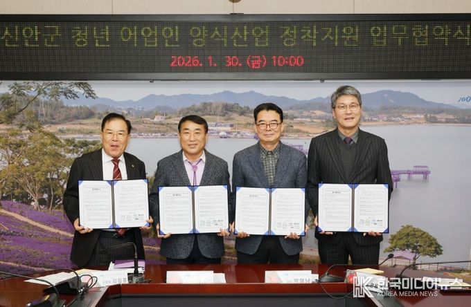[ 한국미디어뉴스 이종철 기자 ] 신안군은 1월 30일 군청에서 유휴수면을 체계적으로 활용하고 청년·귀어인·신안해양과학고등학교(약칭:신해고) 졸업(예정)자의 양식업 참여 기회를 확대하기 위해 ‘신안군 청년 어업인 양식산업 정착지원 업무협약’을 체결했다.