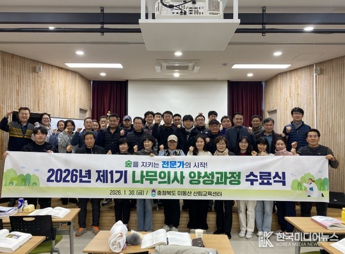 [ 한국미디어뉴스 김풍옥 기자 ] 충청북도산림환경연구소는 지난 1월 5일부터 30일까지 미동산산림교육센터에서 운영한 ‘2026년 제1기 나무의사 양성과정’을 마치고, 교육과정을 이수한 교육생 32명을 배출했다.