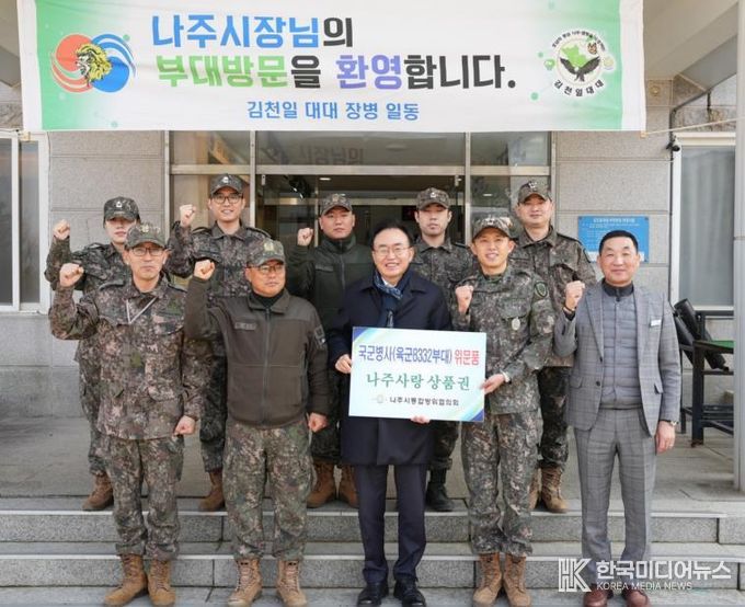 [ 한국미디어뉴스 이종철 기자 ] 전라남도 나주시가 설 명절을 맞아 지역 안보와 시민 안전을 책임지고 있는 군 장병들의 노고에 감사를 전하고 군과 지자체 간 협력 체계를 더욱 공고히 하기 위한 위문 활동을 펼쳤다.