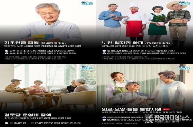 [ 한국미디어뉴스 이종철 기자 ] 전라남도는 2026년에도 어르신이 편안하고 행복한 노후를 보내도록 노인복지 예산 1조 7천998억 원을 편성하고 맞춤형 복지정책을 한층 강화할 계획이다.