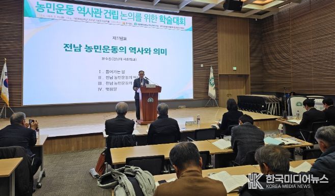 [ 한국미디어뉴스 이종철 기자 ] 전라남도는 10일 목포대학교에서 농민운동역사관 건립 필요성에 대한 공감대를 확산하고, 향후 건립 방향 설정을 위한 다양한 의견을 수렴하기 위한 학술대회를 개최했다.