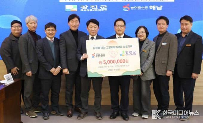 [ 한국미디어뉴스 이종철 기자 ] 강진군과 해남군이 지난 6일, 고향사랑기부금 각 500만 원을 상호 기부하며 두 지자체 간 상생 발전과 고향사랑기부제 활성화를 위한 뜻을 모았다.