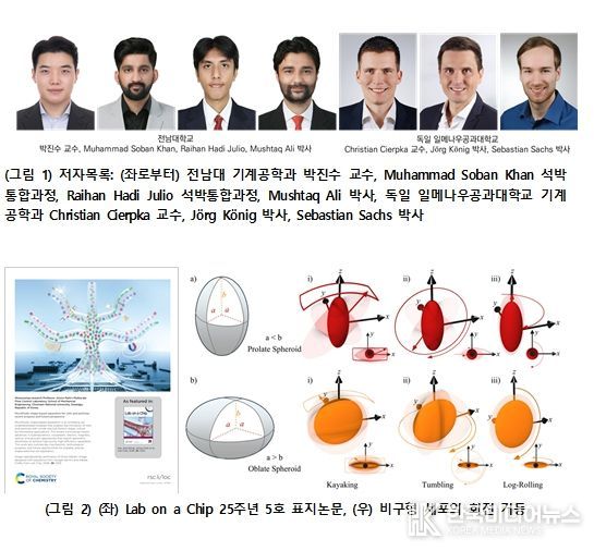 11일 전남대에 따르면 전남대학교 기계공학과 박진수 교수 연구팀이 독일 일메나우공과대학(Technische Universität Ilmenau) 기계공학과 Christian Cierpka 교수, Jörg König 박사 연구팀과 수행한 국제공동연구가 영국 왕립화학회(Royal Society of Chemistry)가 발간하는 국제학술지 Lab on a Chip 25주년 기념 5호의 표지논문으로 선정돼 2026년 3월호에 게재됐다.