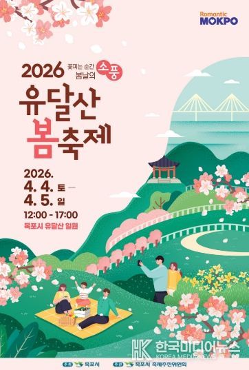 [ 한국미디어뉴스 이종철 기자 ] 목포시는 오는 4월 5일부터 6일까지 이틀간 유달산 일원에서 ‘2026 유달산 봄축제’를 개최한다고 밝혔다.