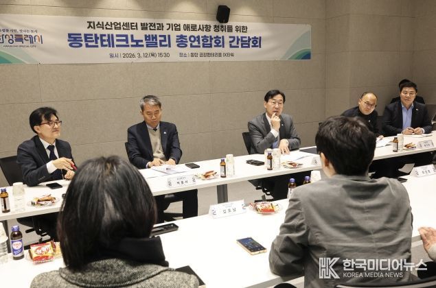 [ 한국미디어뉴스 이원영 기자 ] 화성특례시는 12일 동탄 금강펜테리움 IX타워에서 동탄테크노밸리 총연합회와 함께 입주 기업을 방문하고 간담회를 개최했다.