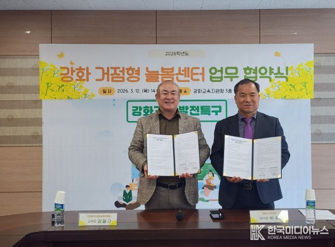 [ 한국미디어뉴스 이원영 기자 ] 인천강화교육지원청은 지난 12일 교육지원청 및 강화군가족센터 관계자가 참석한 가운데, 강화군가족센터와 주말 돌봄 공백 해소를 위한 ‘2026년 강화 거점형 늘봄센터 위탁운영 협약’을 체결했다.