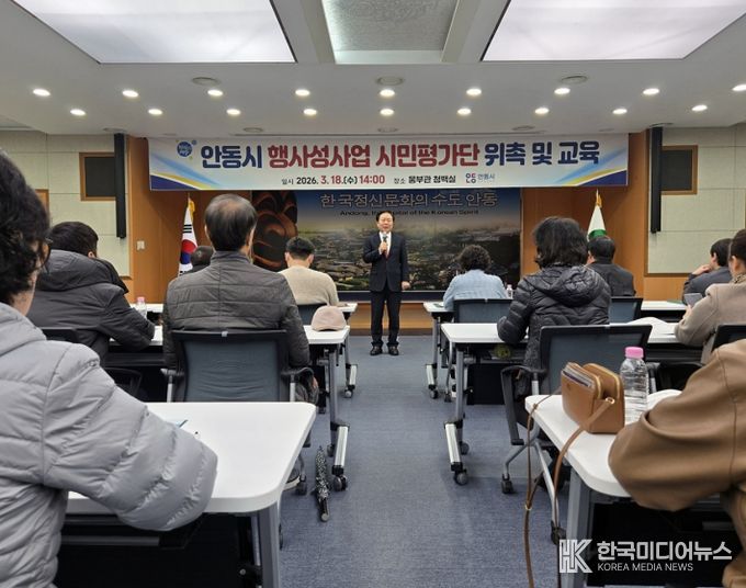 [ 한국미디어뉴스 이보영 기자 ] 안동시는 3월 18일 안동시청 웅부관 청백실에서 ‘2026년 행사성 사업 시민평가단 위촉식’을 개최하고, 평가의 전문성을 확보하기 위한 교육을 실시했다.
