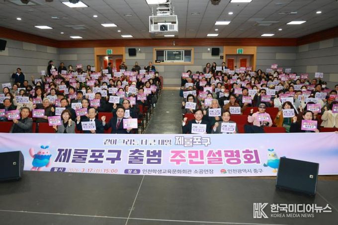 인천시 중구는 지난 17일 오후 인천학생교육문화회관 소공연장에서 김정헌 중구청장과 구의원, 지역 주민 등 200여 명이 참석한 가운데 ‘제물포구 출범 주민설명회’를 성황리에 개최했다.