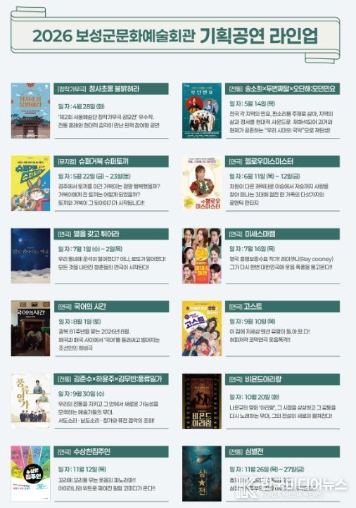 공연별 티켓 예매 일정과 세부 프로그램은 추후 ‘보성군문화예술회관 누리집을 통해 안내된다.