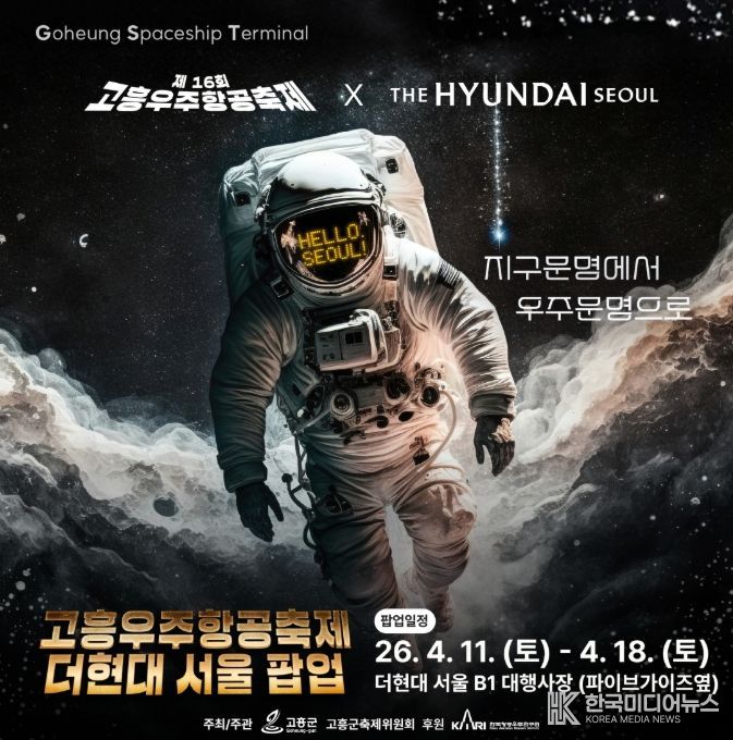 [ 한국미디어뉴스 이종철 기자 ] 고흥군은 오는 4월 11일부터 18일까지 서울 여의도에 위치한 더현대 서울에서 ‘고흥우주항공축제 팝업스토어’를 개최한다고 밝혔다.