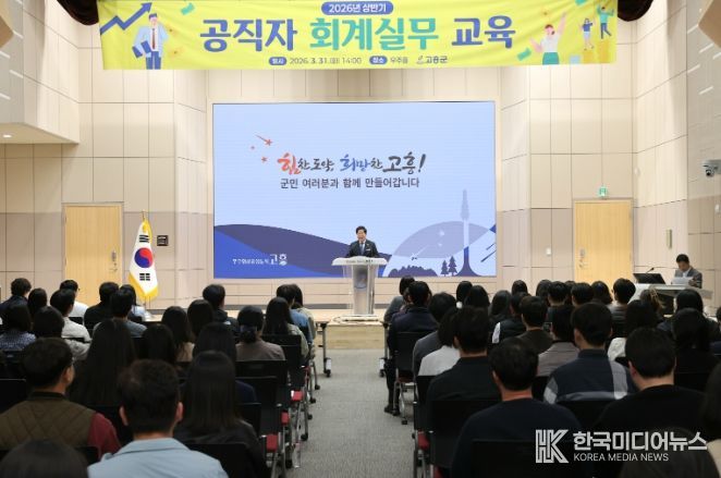 [ 한국미디어뉴스 이종철 기자 ] 고흥군은 지난 3월 31일 군청 우주홀에서 공직자의 회계업무 전문성 강화와 투명하고 효율적인 재정 운영을 위해 ‘2026년 상반기 공직자 회계실무 교육’을 실시했다고 밝혔다.