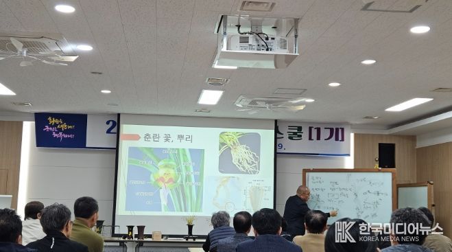 개강식에서는 오리엔테이션을 통해 교육과정과 향후 운영계획을 안내하고, 춘란의 역사와 품종, 생육환경 등 기본 이론 강의가 이어졌다.