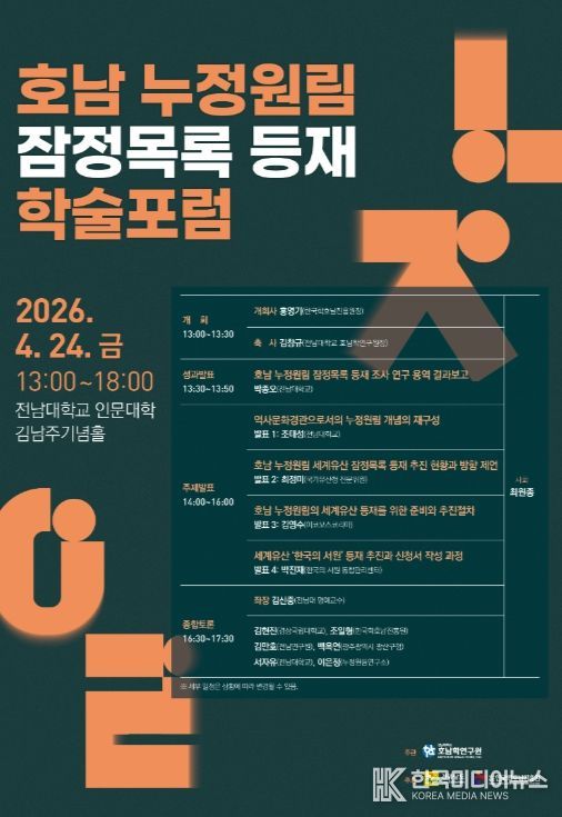 조태성 전남대학교 호남학연구원 교수는 “호남 누정원림은 지역의 정체성과 전통문화를 집약적으로 보여주는 중요한 문화유산”이라며 “이번 학술포럼이 학술적 공감대를 형성하고 세계유산 등재를 위한 실질적인 발판이 되길 기대한다”고 말했다.