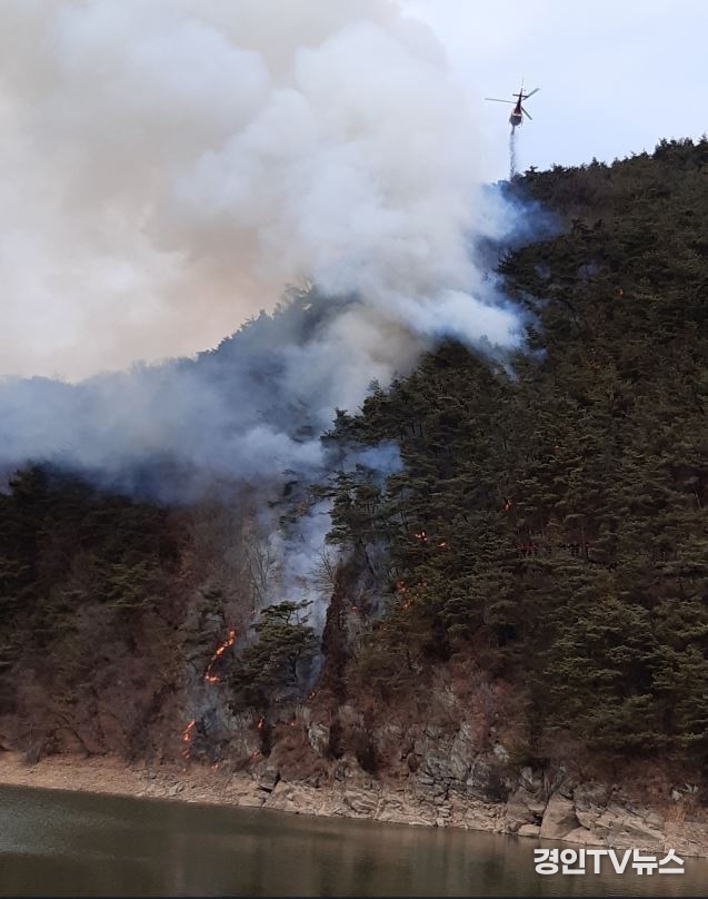 산림당국은 절벽지에 산불이 발생하여 지상진화인력이 산불현장까지 접근이 어려워 진화에 난항을 겪었으며, 현장조사를 통해 정확한 원인 및 피해면적을 조사할 계획이다.