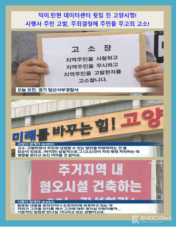 한편 “덕이·탄현 데이터센터” 는 시행사가 주민들을 명예훼손으로 고발했고, 무혐의 결정에 주민들은 무고죄로 맞대응하면서 강하게 반발하고 있는 상태라는 KBS 방송 보도가 있다.
