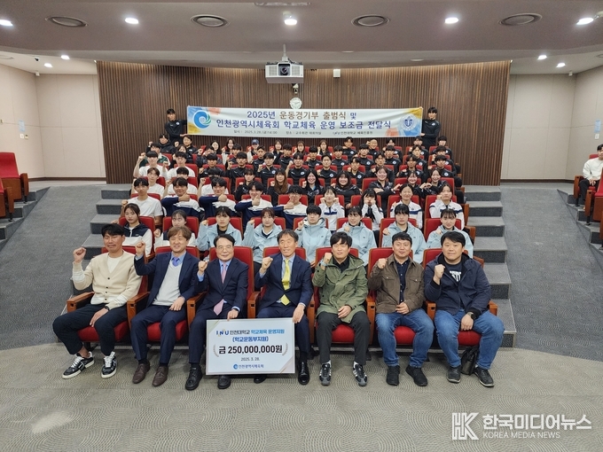 [ 한국미디어뉴스 이원영 기자 ] 인천대학교(총장 박종태)가 지난 28일 오후 인천대 송도캠퍼스 교수회관에서 2025년 운동경기부 출범식을 개최했다고 알렸다. 인천대는 6개 종목 62명의 학생 선수가 올 한해 전국체육대회를 비롯한 전국 규모대회에 참가할 예정이라고 밝혔다.