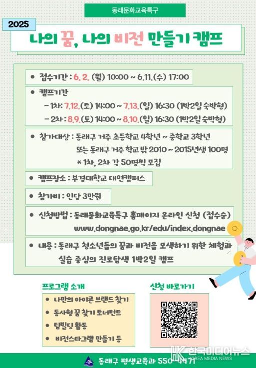참가자는 6월 17일 개별 통보 예정이며, 자세한 사항은 동래구청 평생교육과 교육특구계로 문의하면 된다.