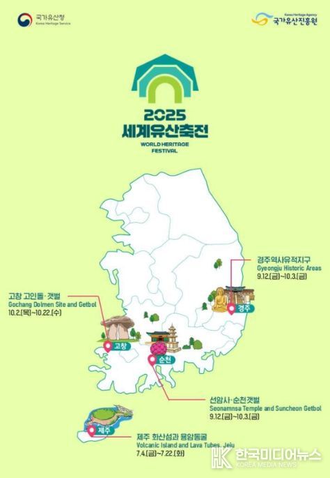 [ 한국미디어뉴스 권경민 기자 ] 국가유산청은 국가유산진흥원과 함께 제주를 시작으로 경주, 순천, 고창에서 '2025년 세계유산축전'을 순차적으로 개최한다.