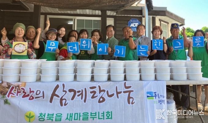 [ 한국미디어뉴스 이보영 기자 ] 평택시 청북읍 새마을부녀회는 지난 10일 관내 어르신들이 폭염 속 건강한 여름을 보내길 바라는 마음을 담아 새마을지도자협의회(회장 이양복)와 함께 삼계탕 나눔 봉사를 진행했다.