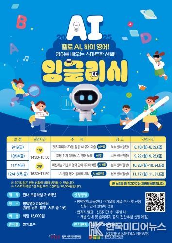 [ 한국미디어뉴스 이보영 기자 ] 평택시국제교류재단 평택영어교육센터에서는 오는 9~12월 관내 초등학생 3~6학년을 대상으로 인공지능(AI) 기술을 접목한 영어교육 프로그램 ‘AI 잉글리시’를 본격적으로 운영한다고 밝혔다.
