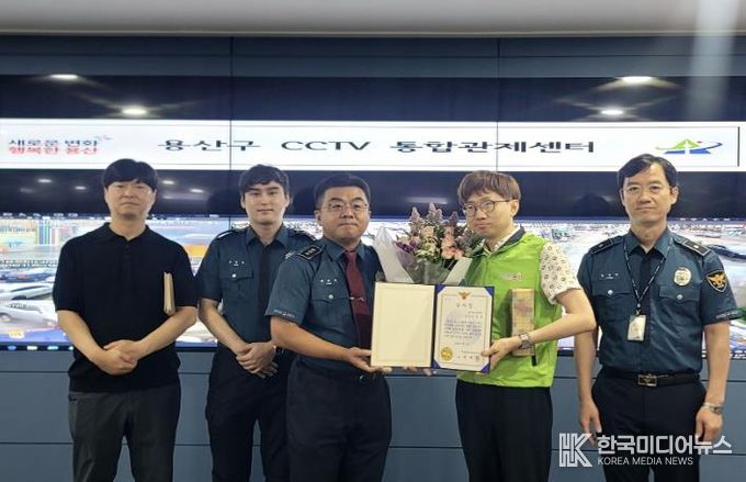 [ 한국미디어뉴스 이보영 기자 ] 서울 용산구 CCTV통합관제센터 소속 관제요원이 폭행 현행범 검거에 기여한 공로로 6일 용산경찰서로부터 감사장을 수여받았다.