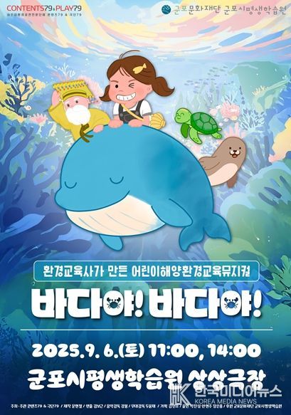 [ 한국미디어뉴스 이보영 기자 ] 군포문화재단 군포시평생학습원 한번더제작소에서 오는 9월 6일 ‘자원순환의 날’을 맞아 플라스틱 병뚜껑을 활용한 체험 프로그램을 진행하며, 상상극장에서는 온 가족이 함께 즐길 수 있는 환경뮤지컬 ‘바다야! 바다야’를 선보인다. 이번 행사는 환경 보호와 자원순환의 중요성을 쉽고 재미있게 전달하고, 어린이와 가족 단위 관람객들에게 환경 실천의 필요성을 알리고자 기획됐다.