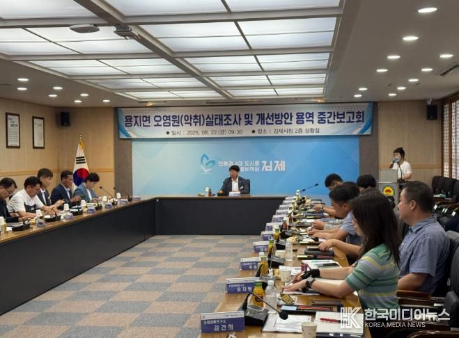 [ 한국미디어뉴스 이원영 기자 ] 김제시는 지난 22일 용지면 일대 고질적인 악취 문제의 근원을 파악하고, 시민이 체감할 수 있는 악취문제 해결책을 마련하기 위해 '용지면 오염원(악취) 실태조사 및 개선방안 용역'중간보고회를 개최했다고 밝혔다.