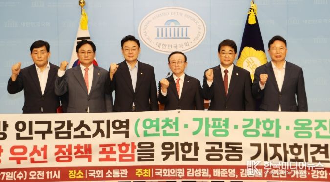 이날 기자회견에는 김성원(동두천·양주·연천), 배준영(중구·강화·옹진), 김용태(포천·가평) 국회의원을 비롯해 4개 군 단체장이 참석, “수도권 내 인구감소지역도 비수도권 지역과 동일하게 국가 정책의 우선 지원 대상에 포함시켜야 한다”는 공동건의문을 발표했다.