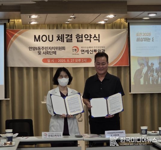 [ 한국미디어뉴스 이보영 기자 ] 안양시 만안구 안양6동 주민자치위원회 및 사회단체는 지난 27일 지역 의료기관인 연세신통외과와 건강진료 및 의료서비스 제휴협약을 체결했다고 28일 밝혔다.