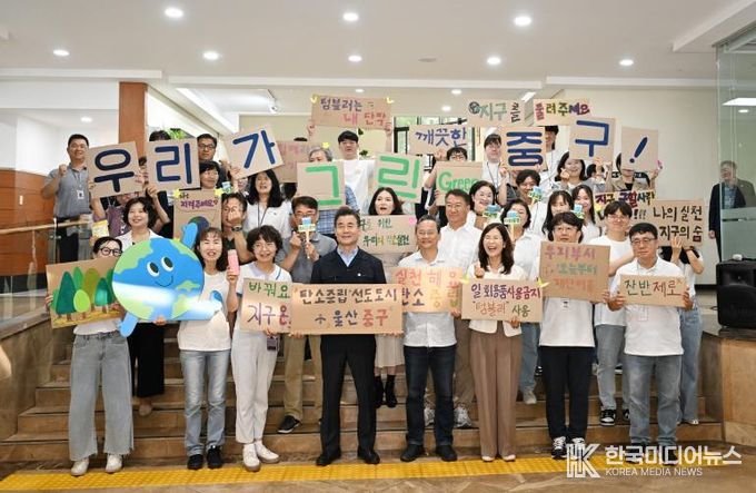 이날 김영길 중구청장과 중구청 전 직원은 탄소중립 실천 서약에 동참했다.