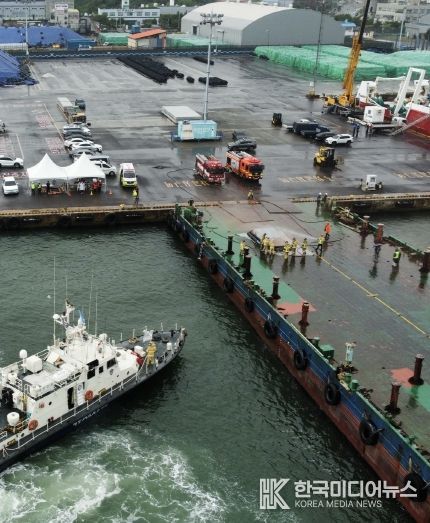 [ 한국미디어뉴스 이보영 기자 ] 울산해양경찰서는 9월 2일 오후 14시부터 울산항 일반부두 해상에서 바지선박에 적재된 전기차량(건설장비) 화재를 가정한 합동 대응 훈련을 실시했다고 밝혔다. 이번 훈련에는 울산항 해상 교통관제센터, 울산 항만공사, 울산남부소방, 울산중앙병원, 예선업협회 6개 기관이 함께 참여했다.