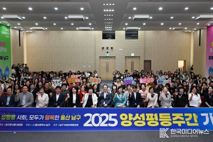 [ 한국미디어뉴스 이보영 기자 ] 울산 남구(구청장 서동욱)는 일상 속 양성평등 문화 확산을 위해 4일 남구청 6층 대강당에서 ‘2025년 양성평등주간 기념행사’를 개최했다.