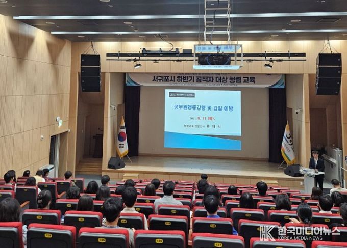 [ 한국미디어뉴스 이원영 기자 ] 서귀포시는 11일 시청 문화강좌실에서 서귀포시 공직자 150여명을 대상으로 직장 내 괴롭힘, 갑질행위 발생을 예방하고 공무원 행동강령 등 반부패 법령에 대한 이해도를 높이기 위한 청렴 교육을 실시했다.